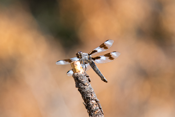 Perhaps the most strikingly beautiful of all of the large dragonflies of Western Canada and the United States, the eight-spotted skimmer (Libellula forensis) contrasts greatly with its environment, whether it is in lowland marshes and ponds or along desert creeks and rivers.